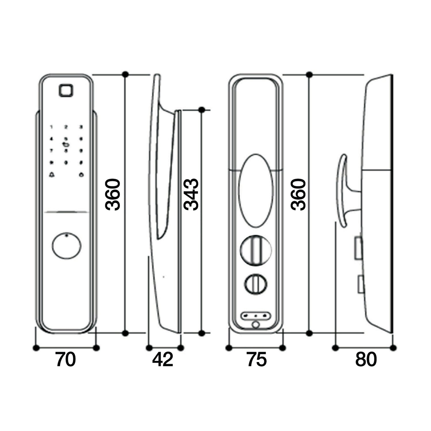 | Supplied with: | 4 pcs of Smart Card 2 pcs of Mechanical Key 1 nos of User Guide 1 nos of Installation Sheet 1 pcs of Lithium Battery |
