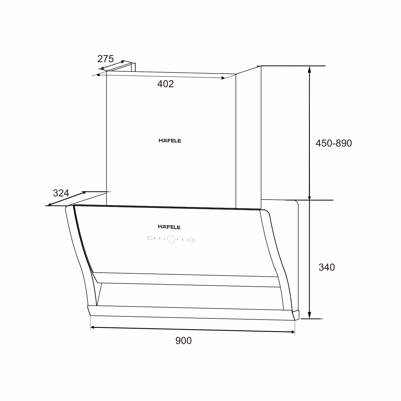 Häfele Slanted Hood 900mm is backordered and will ship as soon as it is back in stock.