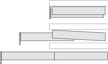 Version: Front panel automatically drops to level of additional worktop, with lateral cover for the hardware and fitting system