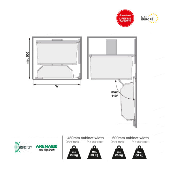 | Same frame for left and right installation – simplifies planning – independent of cabinet height | |