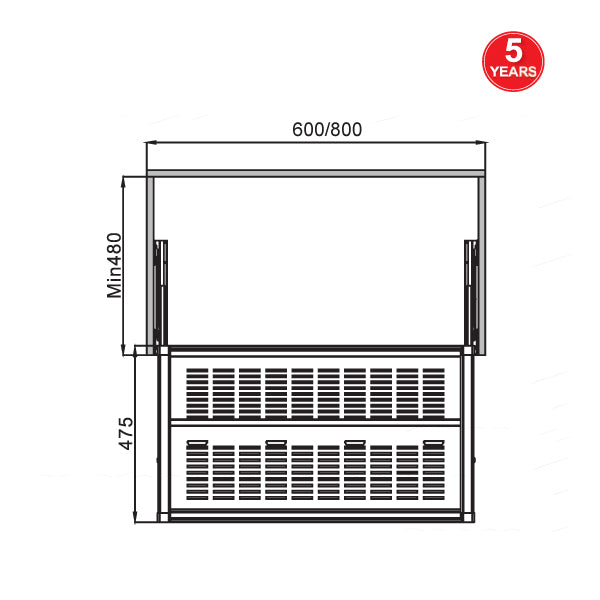 | For cabinet width (mm) 600: | dim. (W x D x H) mm: 564 x 475 x 80 |