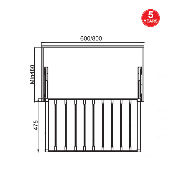 For cabinet width (mm) 600: dim. (W x D x H) mm: 564 x 475 x 80