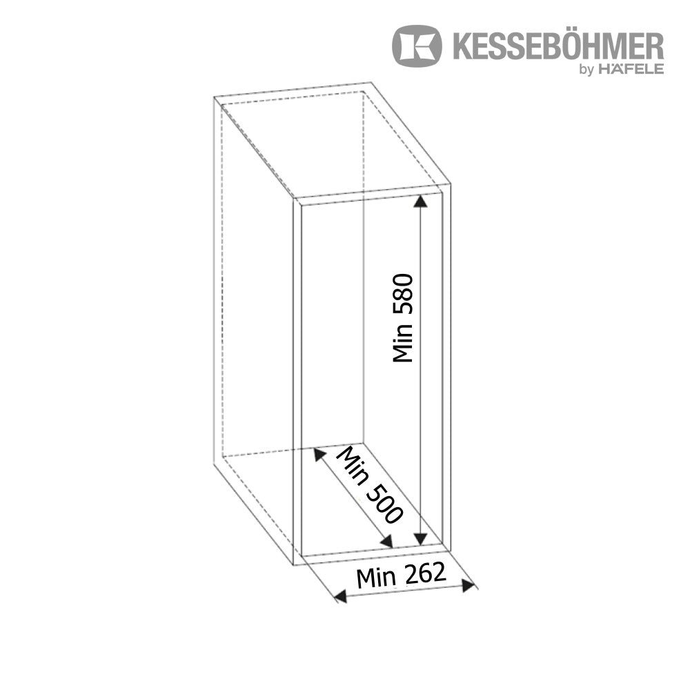 Inside cabinet width / Door width: Min. 262mm / Door 300 mm