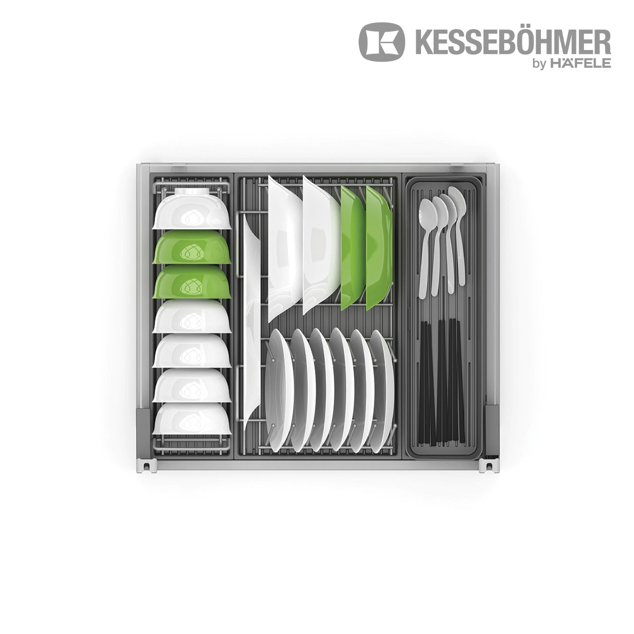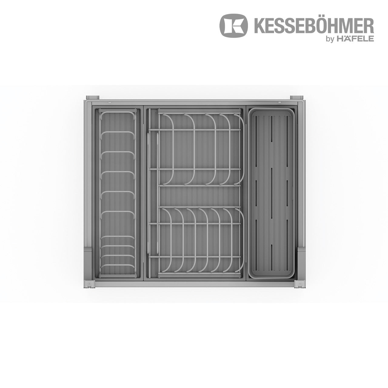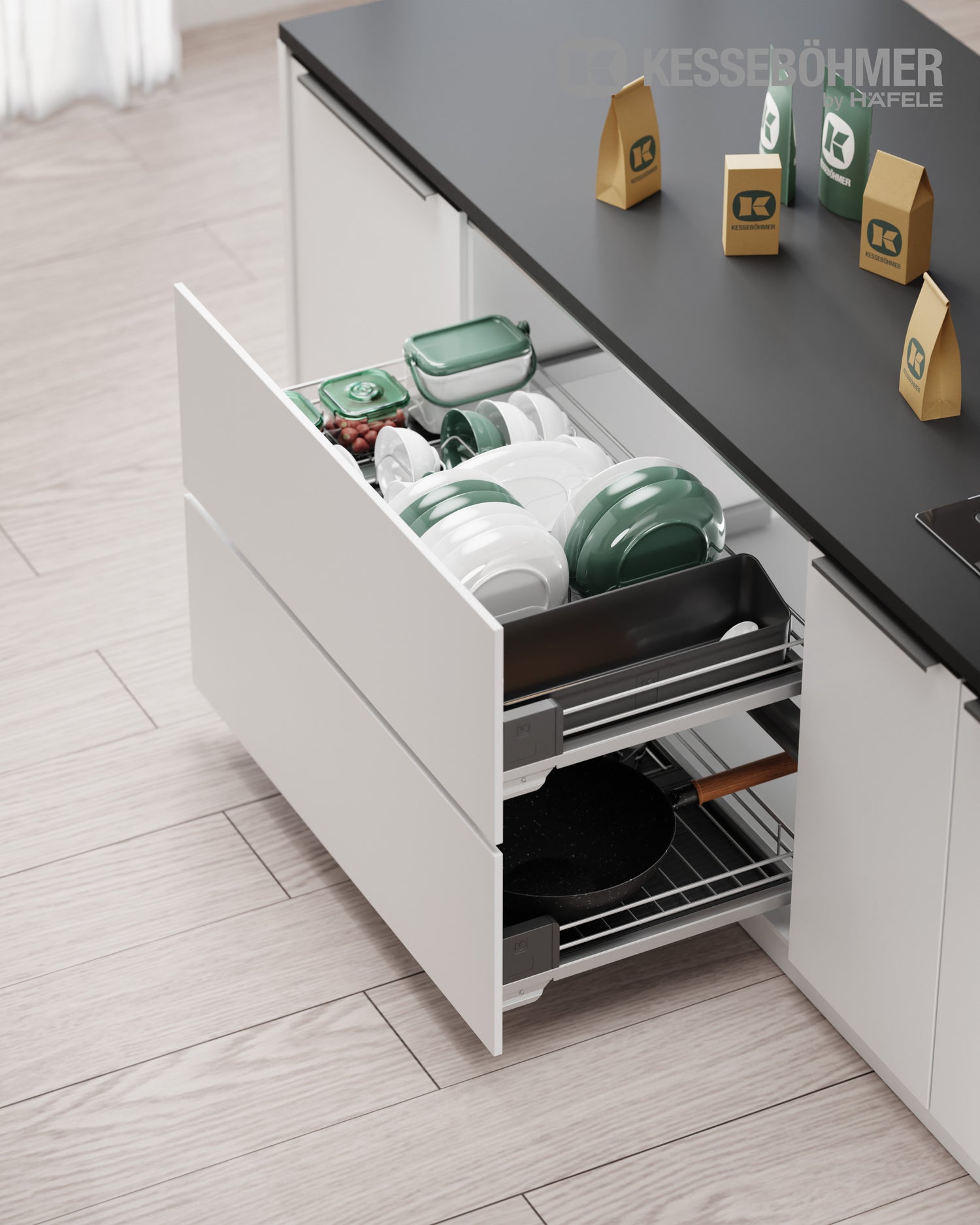 | Set components complete with 1 pull-out frame, modular accessories, snap-in coupling clip, front panel connector, cover caps, full extension with integrated soft closing mechanism and fixing material | |