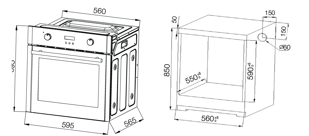 | Product Dimension: | 595W x 565D x 595H mm 560W x 560D x 600H mm |