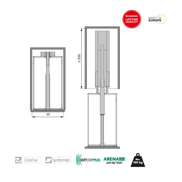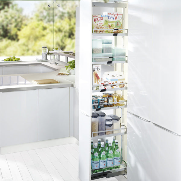 Set components complete with runner, frame, front strips, front brackets and trays/ baskets, including damping system SoftStopp Plus